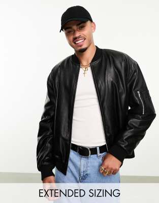 ASOS DESIGN – Oversize-Bomberjacke in schwarzer Lederoptik