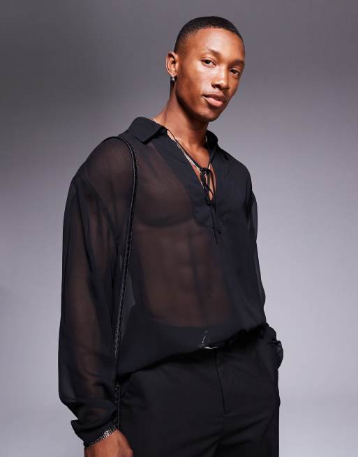 ASOS DESIGN – Oversize-Chiffon-Hemd in verwaschenem Schwarz mit Bindedetail hinten