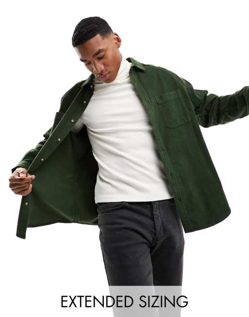 ASOS DESIGN – Oversize-Cordhemd im 90er-Stil in Dunkelgrün mit Raglanärmeln