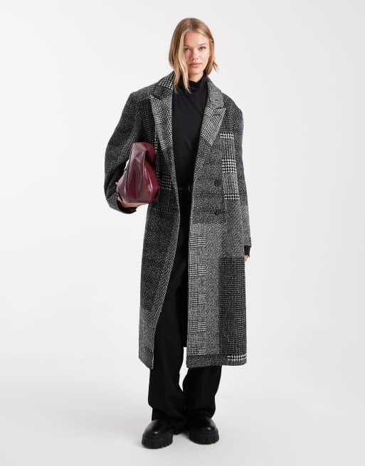 ASOS DESIGN – Oversize-Dad-Mantel in schwarz und weiß kariert