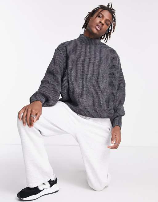 ASOS DESIGN – Oversize-Fischerpullover in Anthrazit mit Rollkragen und Rippung