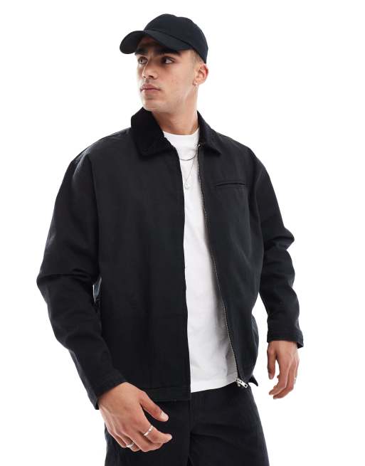 ASOS DESIGN – Oversize-Harrington-Jacke in verwaschenem Schwarz mit Cordkragen