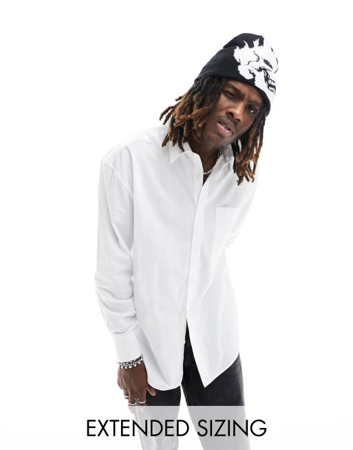 ASOS DESIGN – Oversize-Hemd aus Popeline im Grunge-Design in Weiß