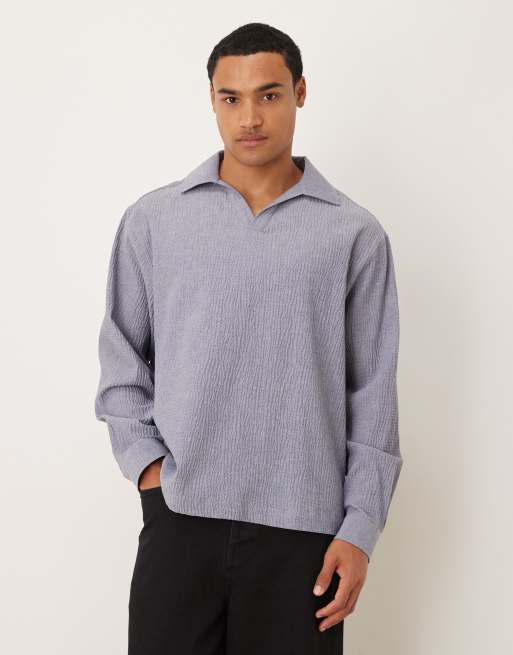 ASOS DESIGN – Oversize-Hemd aus Seersucker in Blau mit Stickerei im Nackenbereich auf der Rückseite