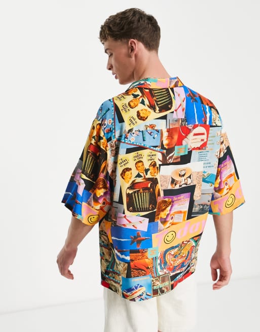 ASOS DESIGN – Oversize-Hemd mit Retro-Print in leuchtenden Farben, Reverskragen und überschnittenen Schultern
