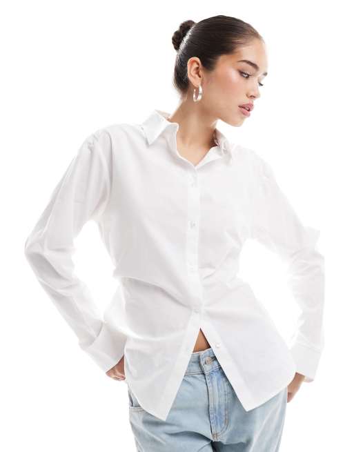 ASOS DESIGN – Oversize-Hemdbluse aus Popeline in Weiß mit geschnürter Rückseite