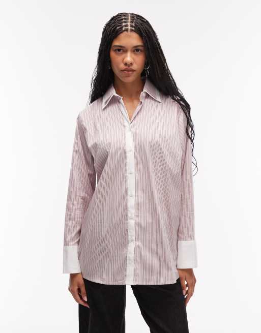 ASOS DESIGN – Oversize-Hemdbluse in gestreiftem Rosa mit doppeltem Kragen