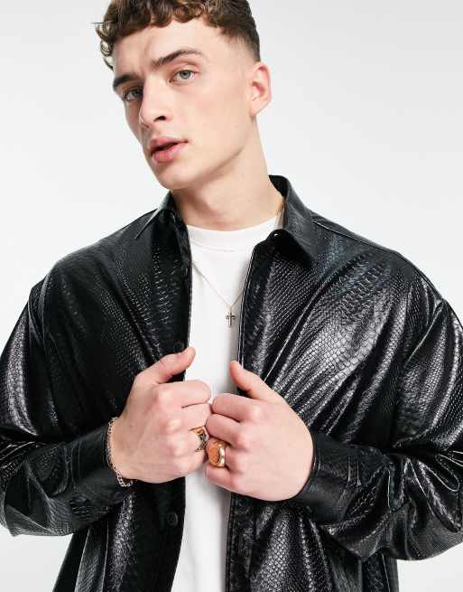 ASOS DESIGN – Oversize-Jacke aus Kunstleder in Kroko-Schwarz