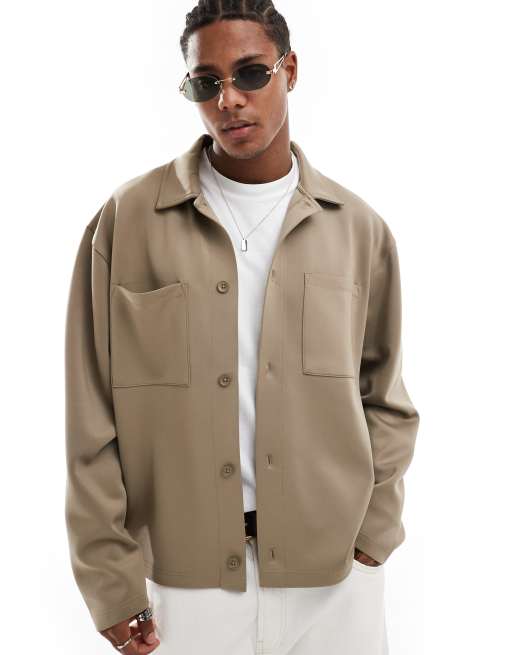 ASOS DESIGN – Oversize-Jacke aus Material in Neoprenoptik in Kamel