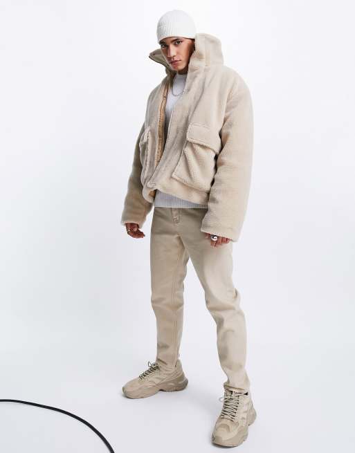 ASOS DESIGN – Oversize-Jacke aus Teddyfell in Ecru