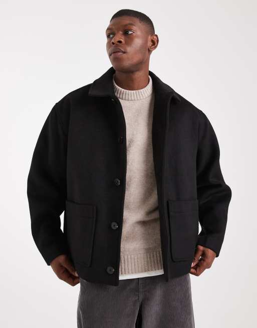 ASOS DESIGN – Oversize-Jacke in schwarzer Wolloptik