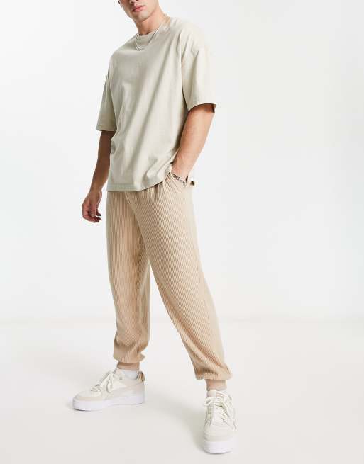 ASOS DESIGN – Oversize-Jogginghose aus angerautem Rippstoff in Beige