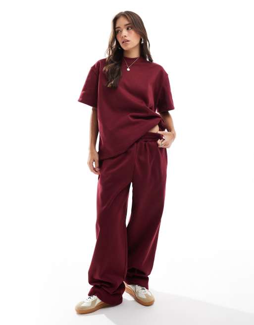 ASOS DESIGN – Oversize-Jogginghose in Burgunderrot mit weitem Bein, Kombiteil
