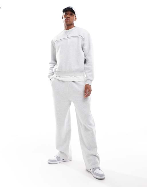 ASOS DESIGN – Oversize-Jogginghose in meliertem Grau mit geradem Schnitt und Seitenbahn