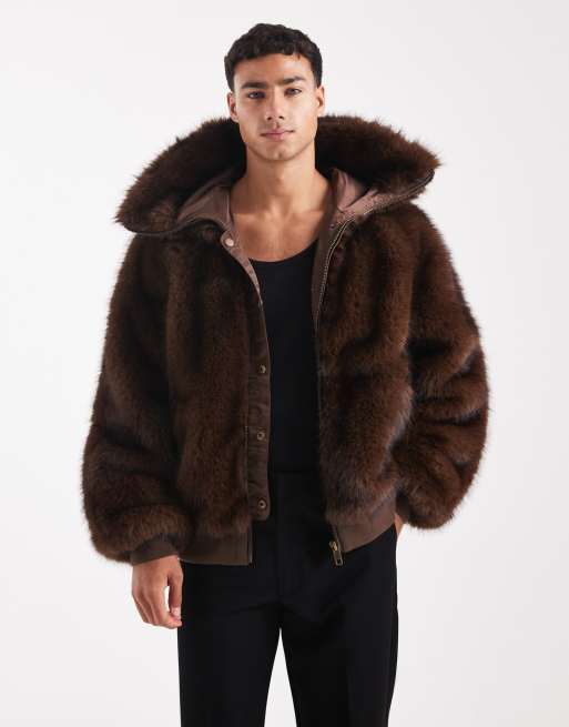 ASOS DESIGN – Oversize-Kapuzenjacke aus Kunstpelz in Braun