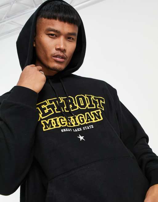 ASOS DESIGN – Oversize-Kapuzenpullover aus Fleece in Schwarz mit „Detroit“-Stickerei