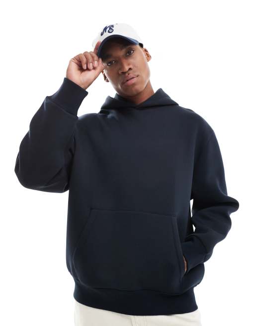 ASOS DESIGN – Oversize-Kapuzenpullover aus schwerem, neoprenartigem Material in Marineblau