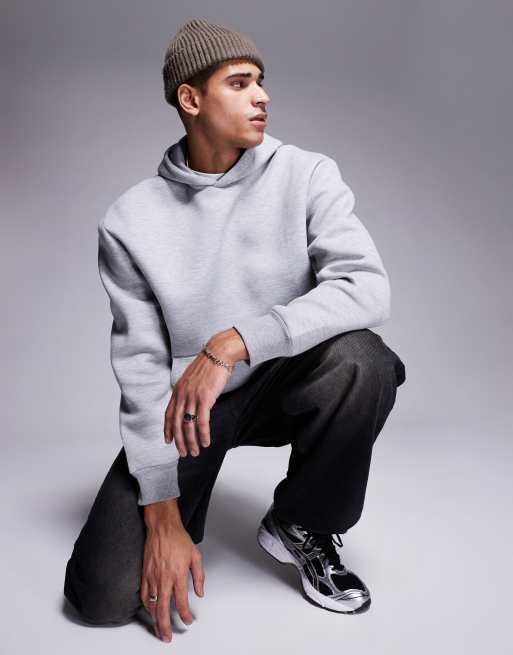 ASOS DESIGN – Oversize-Kapuzenpullover aus schwerem, neoprenartigem Material in meliertem Grau mit Reißverschluss