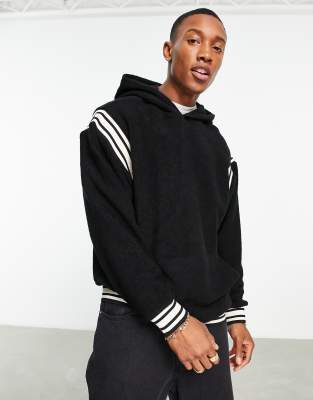 ASOS DESIGN – Oversize-Kapuzenpullover aus strukturiertem Stoff in Schwarz mit Zierstreifen an den Ärmeln