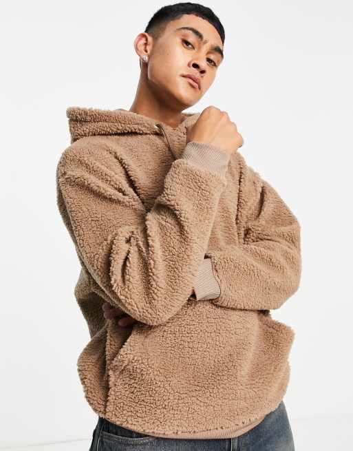 ASOS DESIGN – Oversize-Kapuzenpullover aus Teddymaterial in Beige