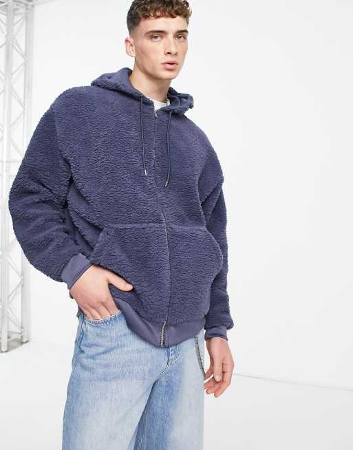 ASOS DESIGN – Oversize-Kapuzenpullover aus Teddymaterial in Blau