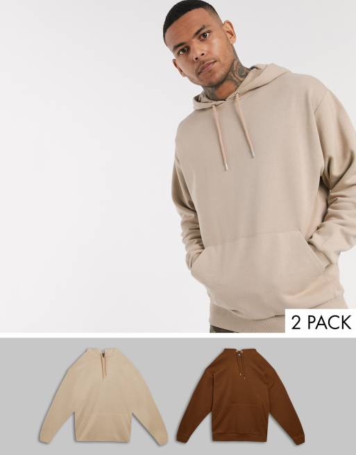 ASOS DESIGN – Oversize-Kapuzenpullover im 2er-Pack, Beige und Braun