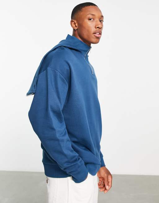 ASOS DESIGN – Oversize-Kapuzenpullover in Blau mit Reißverschluss an der Kapuze