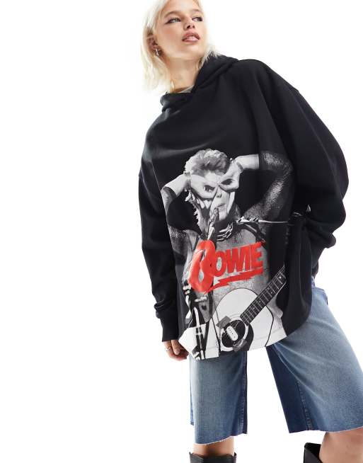 ASOS DESIGN – Oversize-Kapuzenpullover in Schwarz mit lizenziertem „Bowie“-Print