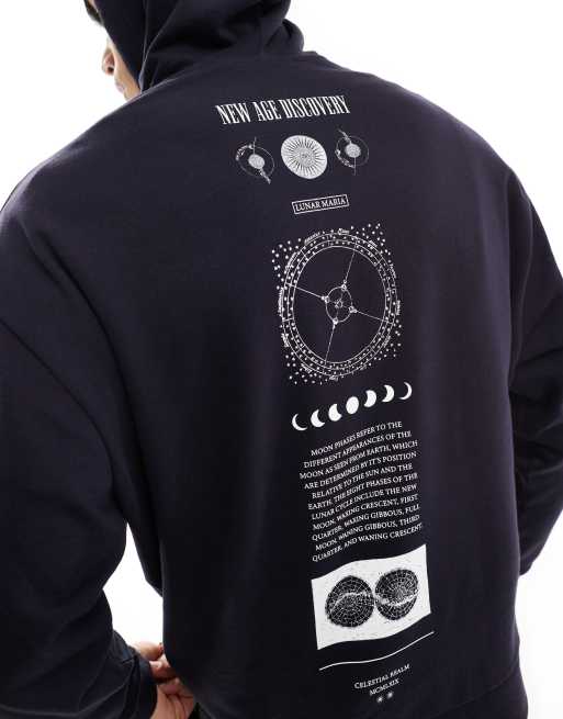 ASOS DESIGN – Oversize-Kapuzenpullover in Schwarz mit Print entlang der Wirbelsäule