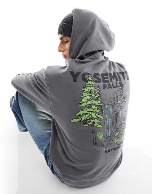 ASOS DESIGN – Oversize-Kapuzenpullover in verwaschenem Anthrazit mit Outdoor-Rückenprint
