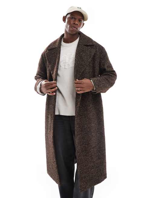 ASOS DESIGN – Oversize-Mantel in melierter brauner Wolloptik