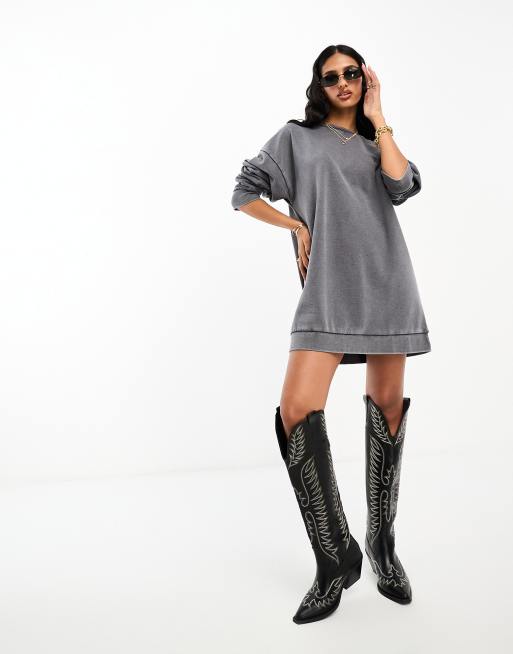 ASOS DESIGN – Oversize-Minikleid aus Sweatshirt-Stoff mit Acid-Waschung in Anthrazit