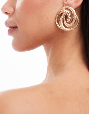 ASOS DESIGN – Oversize-Ohrstecker in gebürstetem Goldton mit Wirbeldesign und glänzendem Detail