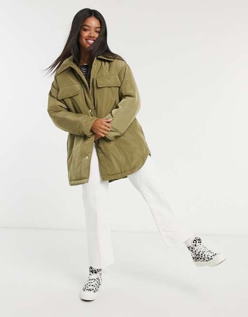 ASOS DESIGN – Oversize-Puffer-Hemdjacke in Khaki - MGREEN