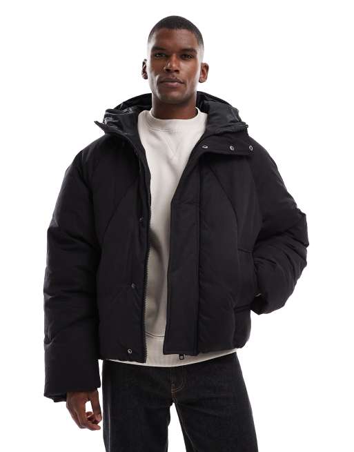 ASOS DESIGN – Oversize-Pufferjacke in Schwarz mit Kapuze