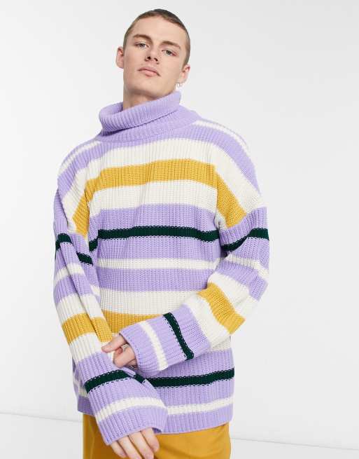 ASOS DESIGN – Oversize-Pullover mit Stehkragen, Seemanns-Rippenstruktur und mehrfarbigen Streifen