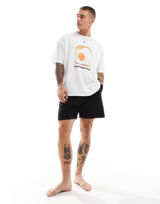 ASOS DESIGN – Oversize-Pyjama-Set in Weiß mit „Good Morning“-Grafikprint