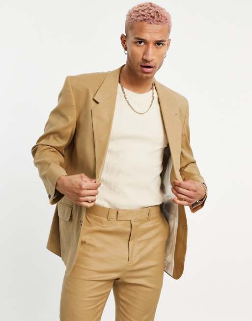 ASOS DESIGN – Oversize-Sakko aus Leinenmischung in Tabakbraun