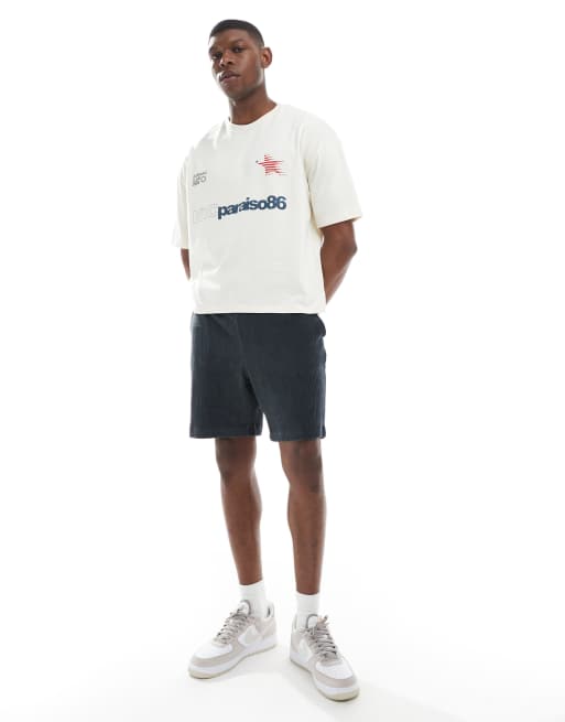 ASOS DESIGN – Oversize-Shorts aus geripptem Velours in Grau