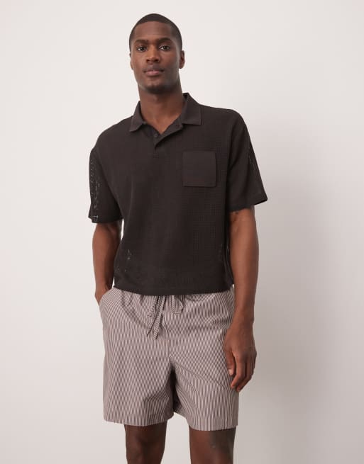ASOS DESIGN – Oversize-Shorts in Burgunderrot gestreift, Kombiteil