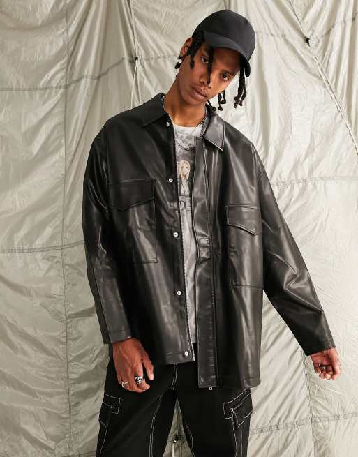 ASOS DESIGN – Oversize-Sportjacke aus Kunstleder in Schwarz