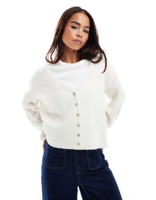 ASOS DESIGn – Oversize-Strickjacke in Creme mit verschiedenen Mustern und tief angesetzten Schultern