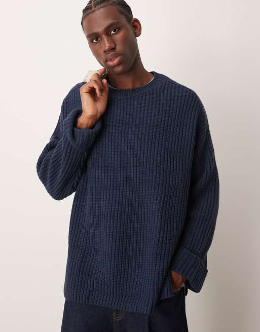ASOS DESIGN – Oversize-Strickpullover aus schwerem Wollmix in Marineblau