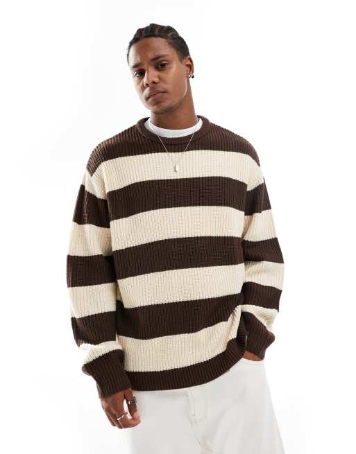 ASOS DESIGN – Oversize-Strickpullover in gestreiftem Braun