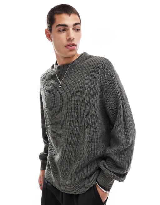 ASOS DESIGN – Oversize-Strickpullover in meliertem Anthrazit mit Patentmuster