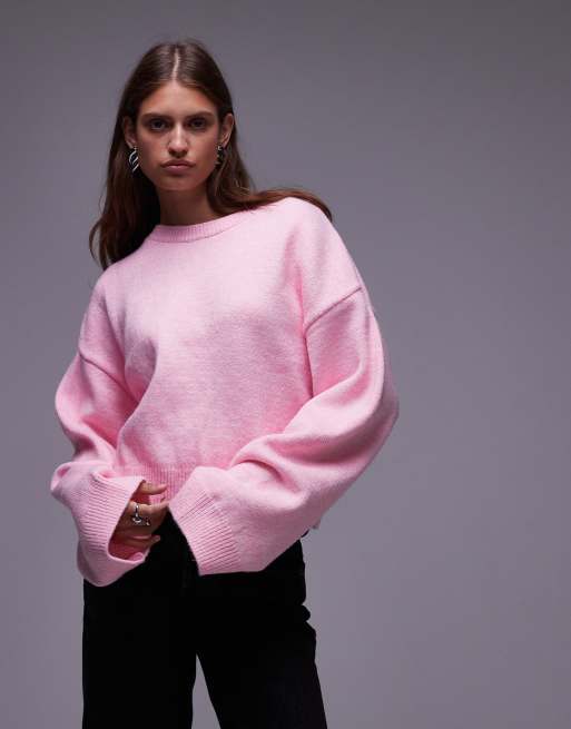 ASOS DESIGN – Oversize-Strickpullover in Rosa mit weiten Ärmeln