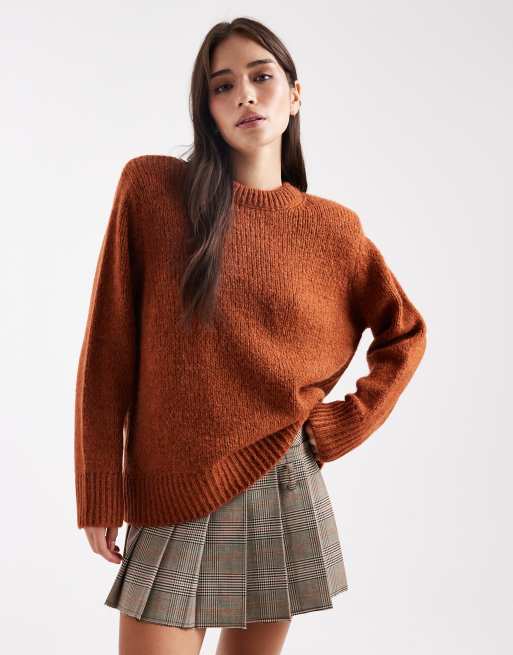 ASOS DESIGN – Oversize-Strickpullover in Toffee mit Schulterpolstern