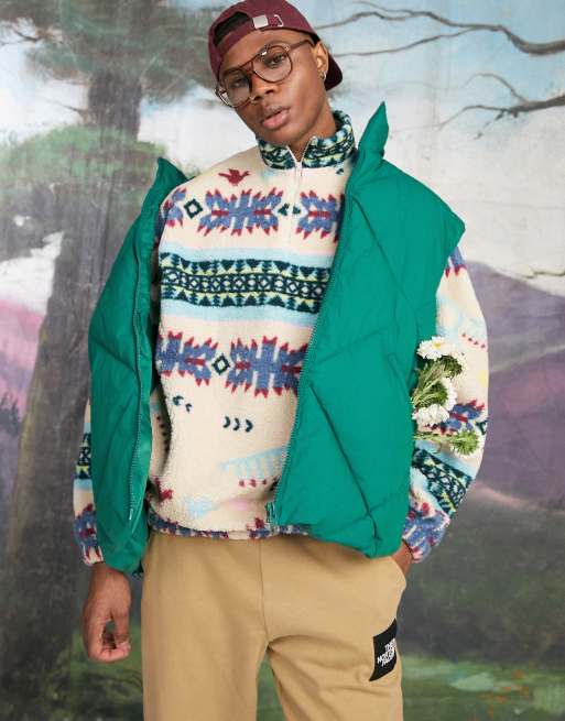 ASOS DESIGN – Oversize-Sweatshirt aus Teddyfell mit halblangem Reißverschluss und durchgängigem Aztekenmuster