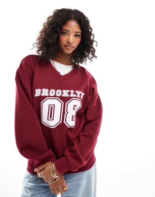 ASOS DESIGN – Oversize-Sweatshirt in Burgunderrot mit „Brooklyn“-Applikationsprint