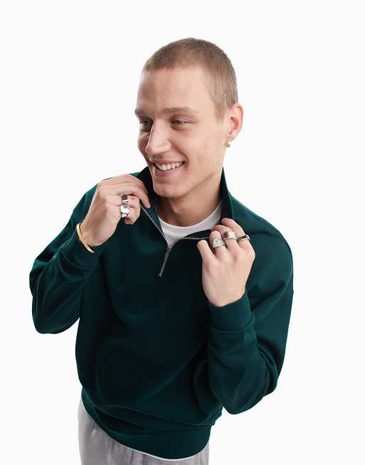 ASOS DESIGN – Oversize-Sweatshirt in Dunkelgrün mit kurzem Reißverschluss